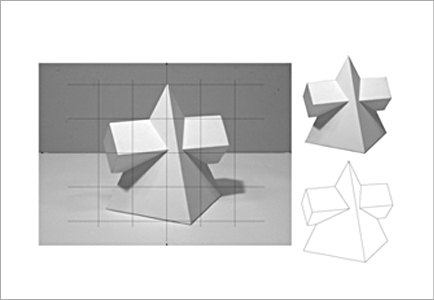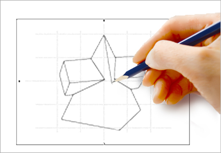 形を上手く捉えるためにモチーフにあらかじめ輪郭線とガイド線を引いてあります。